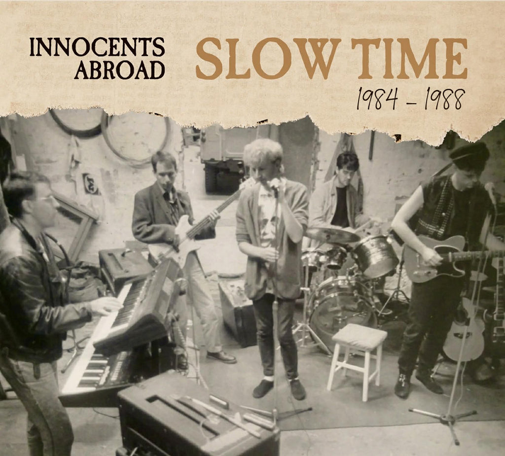 From the vaults, a 17-track trawl through the recorded output of Innocents Abroad Phase 1. Resequenced to reflect the main Rock & Folk Rock strands of the bands youthful output, ‘Slow Time’ has been repackaged and re-mastered for extra punch by Richard Werner. Enjoy the sound of us doing ourselves the favour of over-reaching.Comes in a lovely gatefold card case with sleeve designed by Calum Hadden